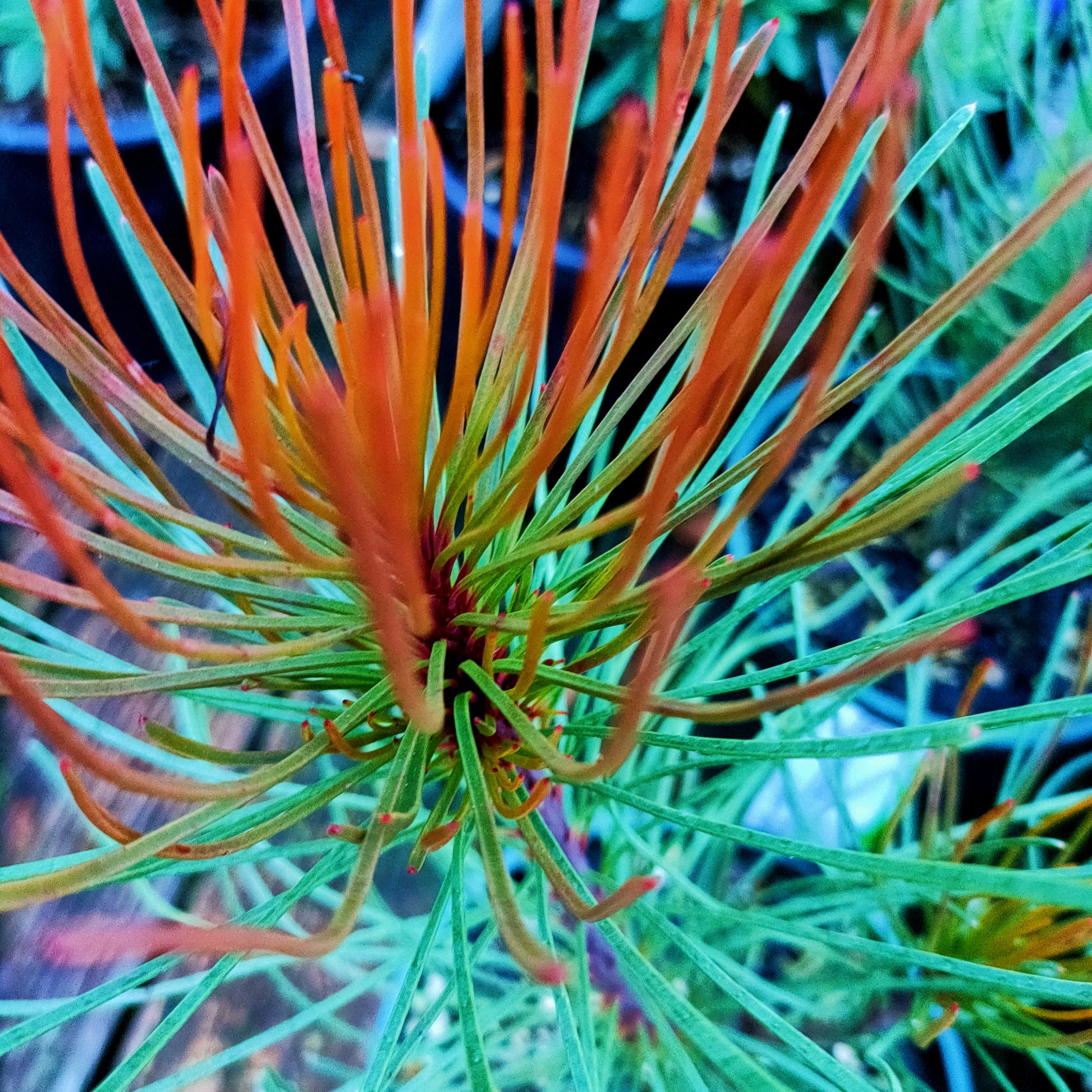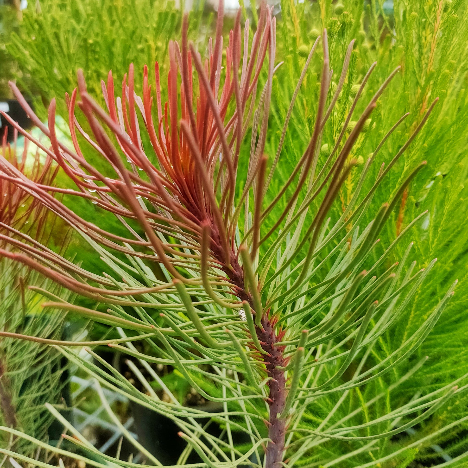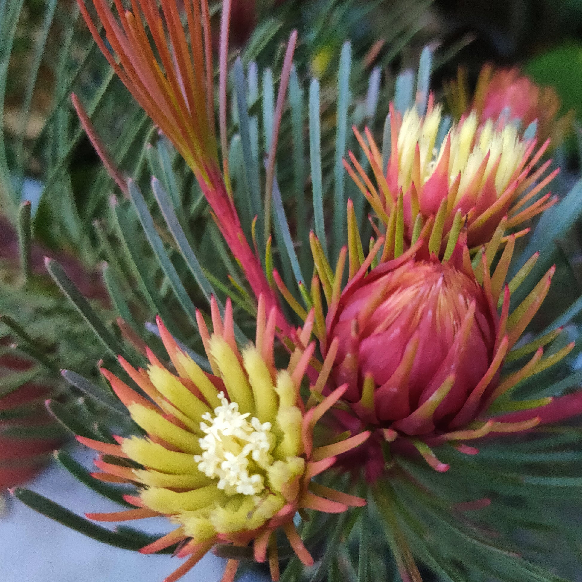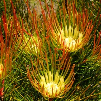 Aulax cancellata, the channel-leaf featherbush, is a shrub that is native to the Western Cape and the Eastern Cape and belongs to the family Proteaceae. This plant is widespread, it occurs on the Cape Peninsula, Hottentots-Holland Mountains to the Langeberg and Kouga Mountains, Swartberg and Kammanassie Mountains.
