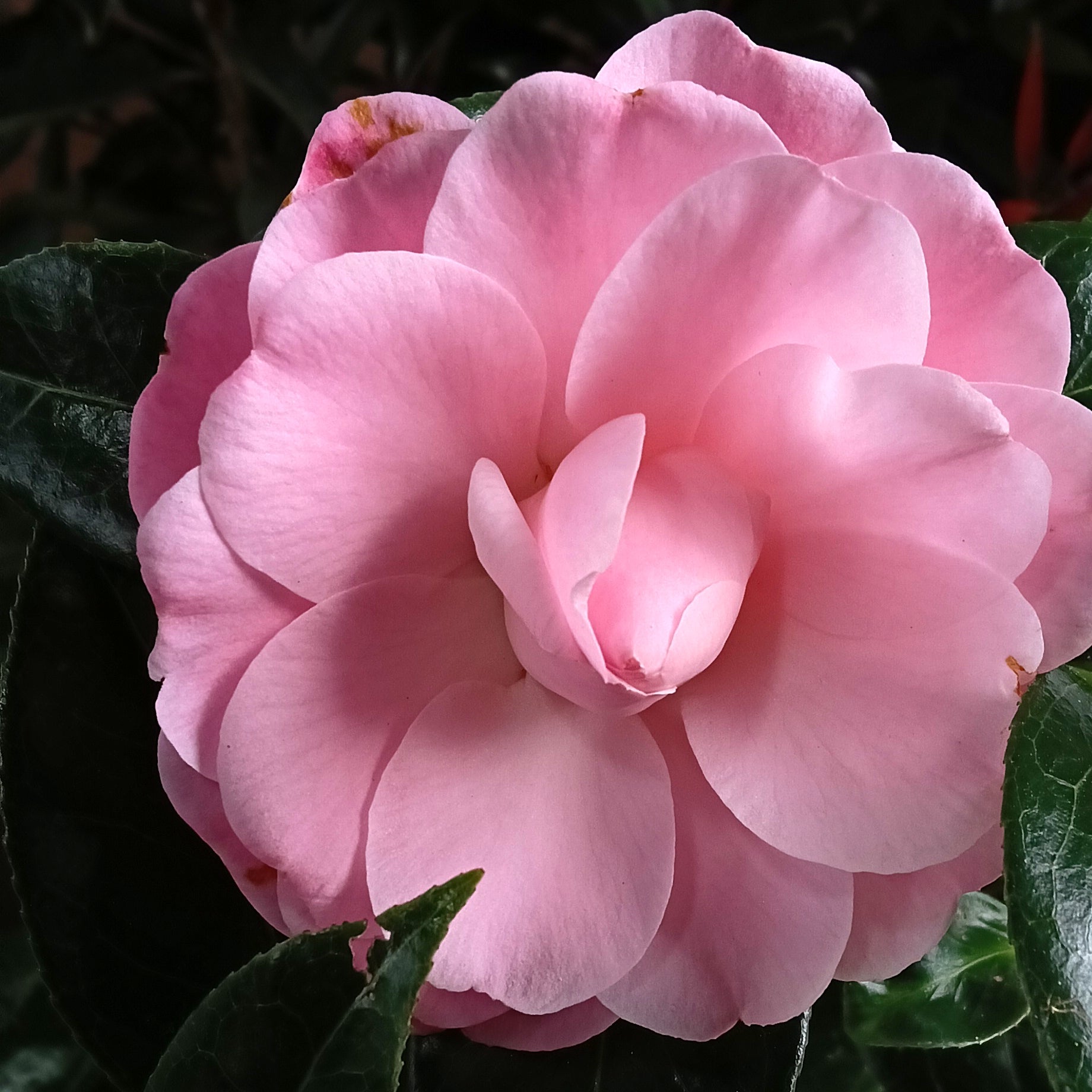 This hardy evergreen variety boasts double blooms with pure white petals edged with a pink blush, blooming from winter through to spring. The leaves are glossy, dark green. Vigorous compact grower. Suitable for garden hedges, in a container, espalier or as a specimen. Position in full sun to semi-shade. H 2.5m x W 2m.