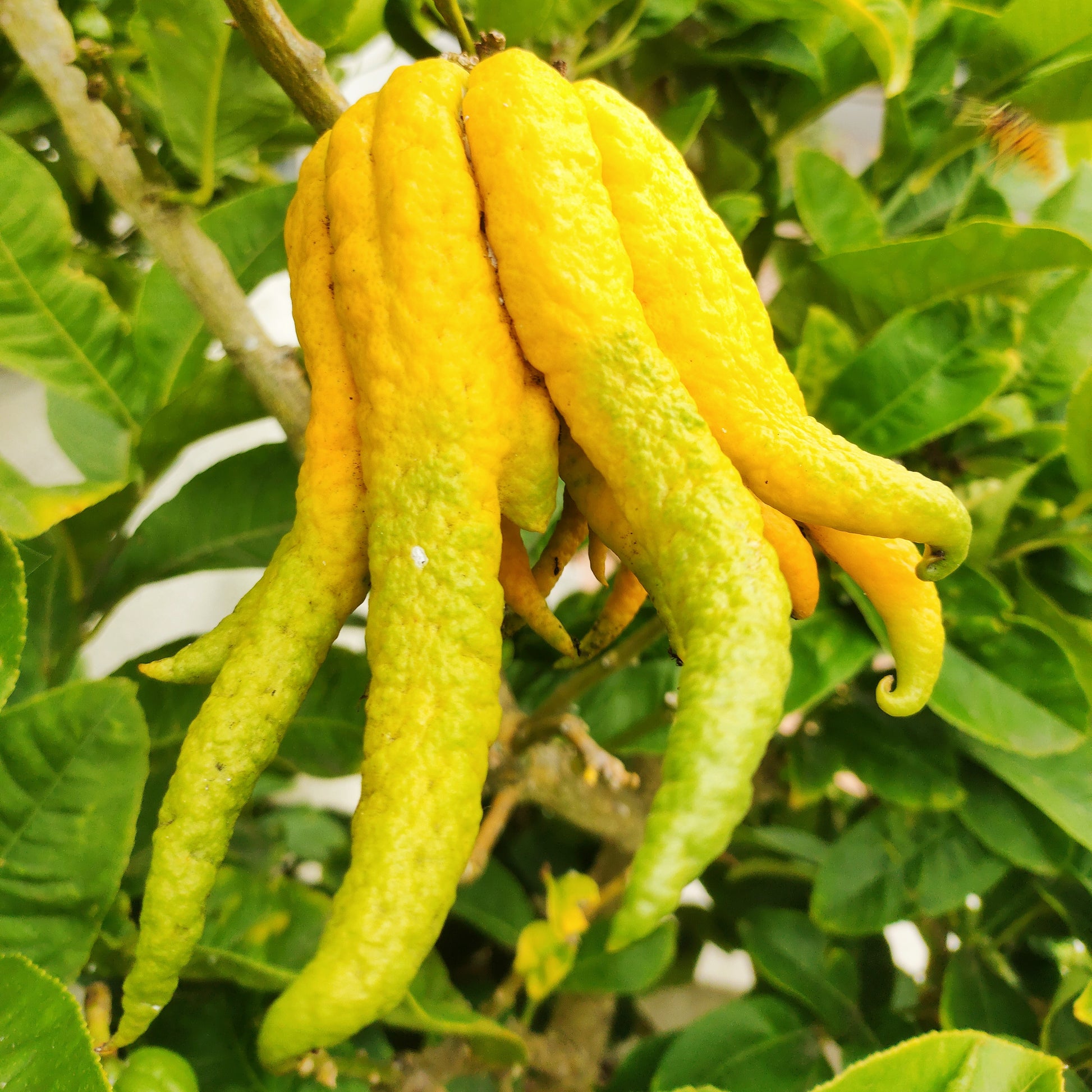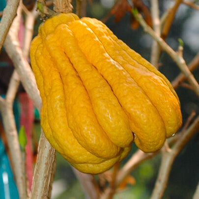 Ornamental citrus with yellow fruit, shaped like fingers on a hand. Prized in Asia for its perfumed aroma, insect repellant and air freshener. Little or no pulp, can be eaten as candied peel. Frost sensitive when young.