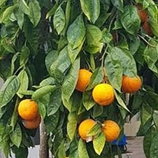 Cipo Oranges are a unique weeping selection of orange with sweet and juicy fruit with a slight pineapple tang that are ready from late June. Ideal for pots to show off its weeping form.Β