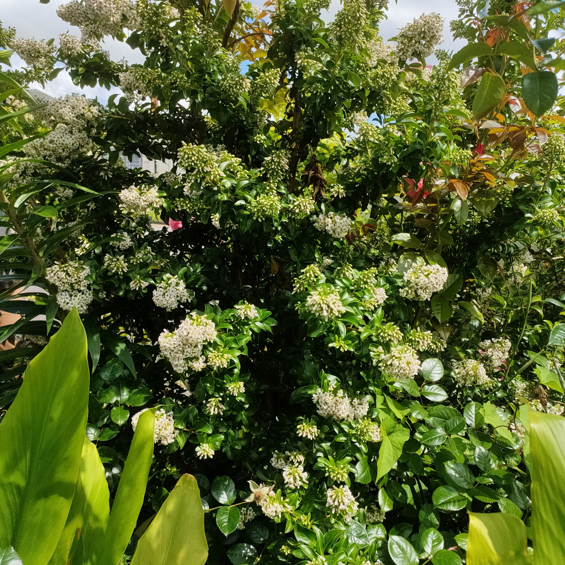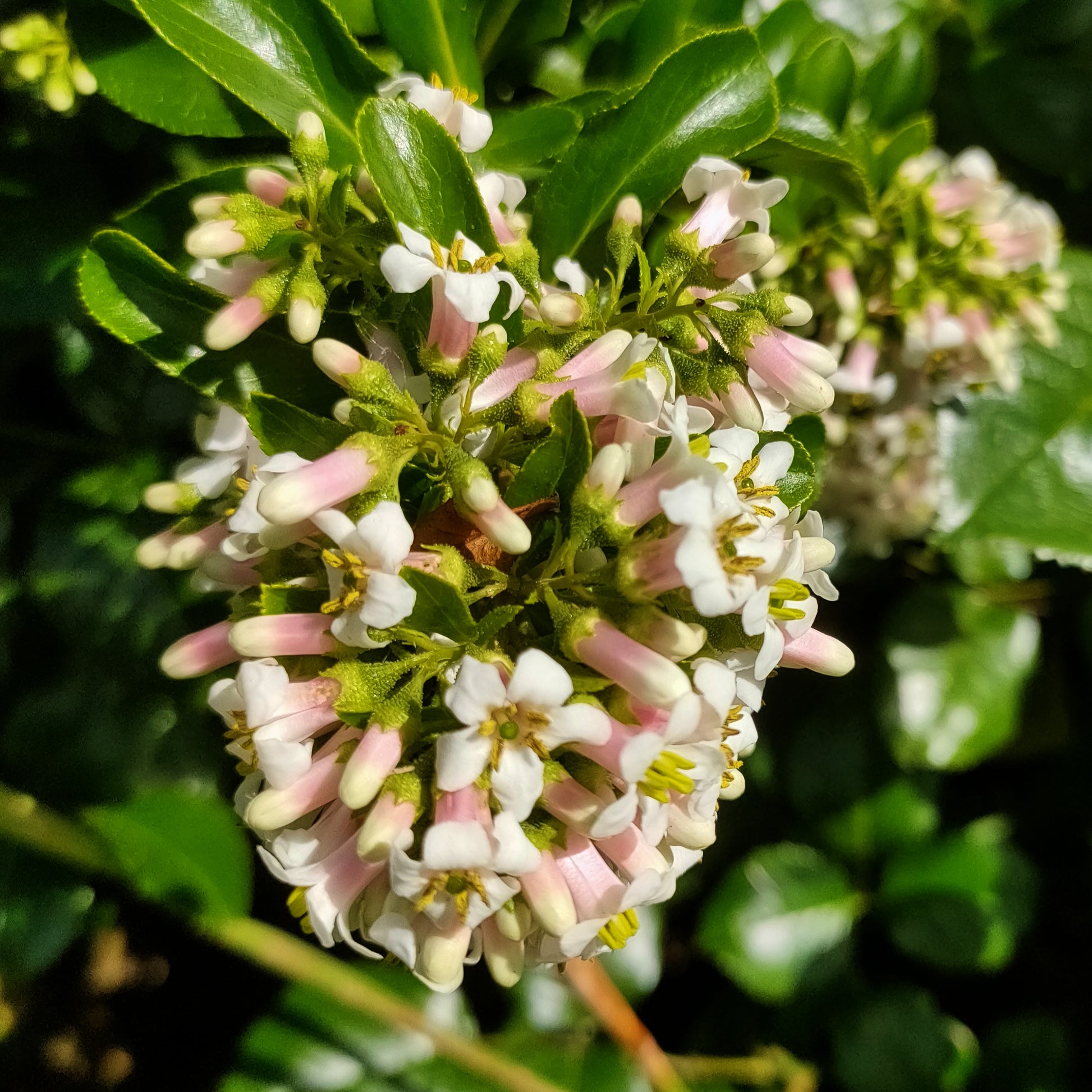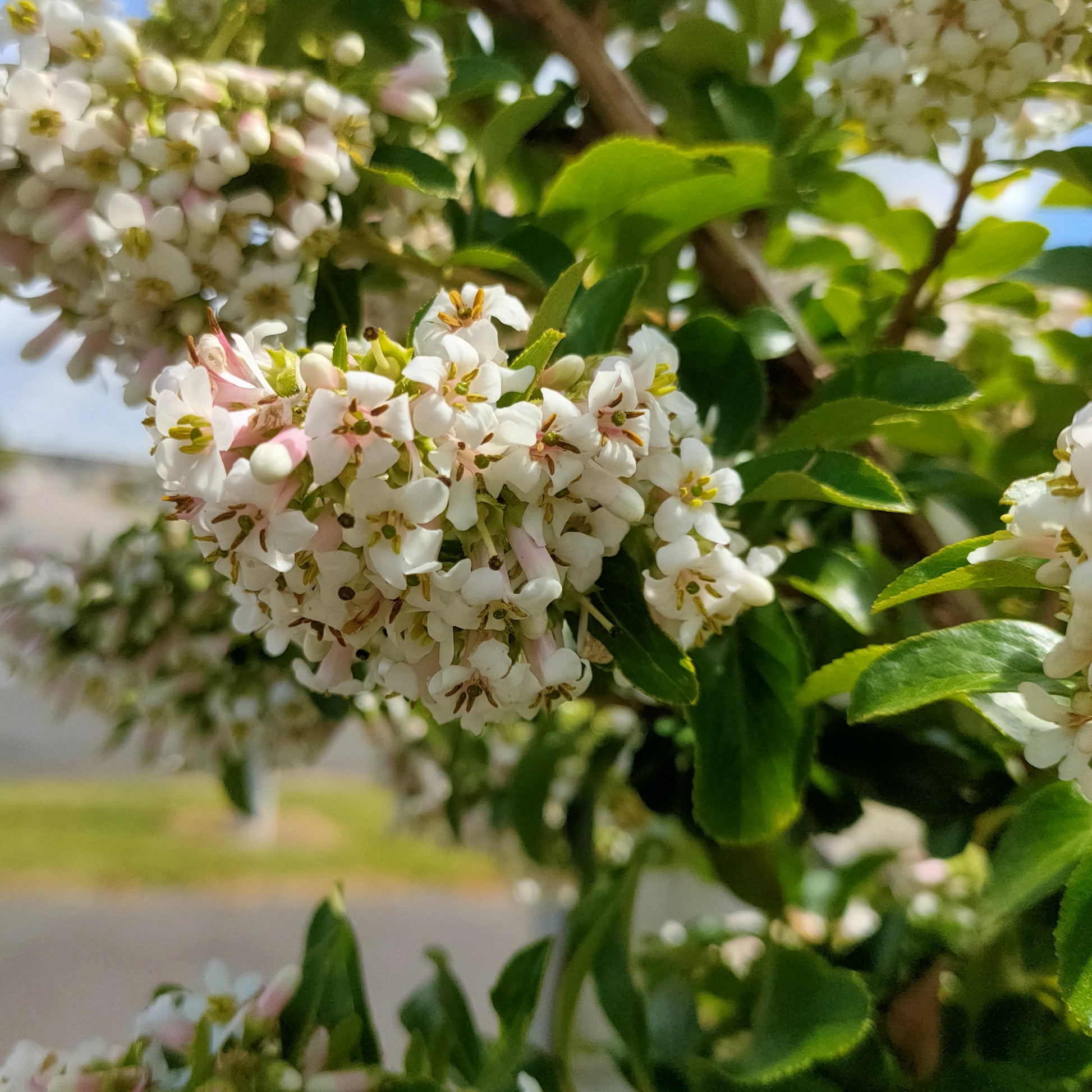 Escallonia 'Snowbud' is a stunning addition to any garden. With its unique characteristics, it provides not only visual appeal but also attracts pollinators, making it an environmentally friendly choice. Its pink flushed white strongly fragrant flowers and dense foliage add just the right amount of elegance and privacy to any landscape. The flowers are often pink flushed. Grows to 2.5-3m tall.