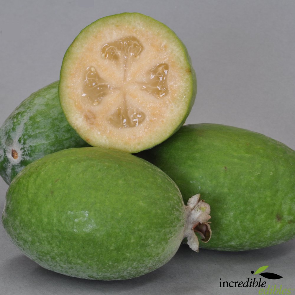 Feijoa sellowiana 'White Goose' (Feijoa)