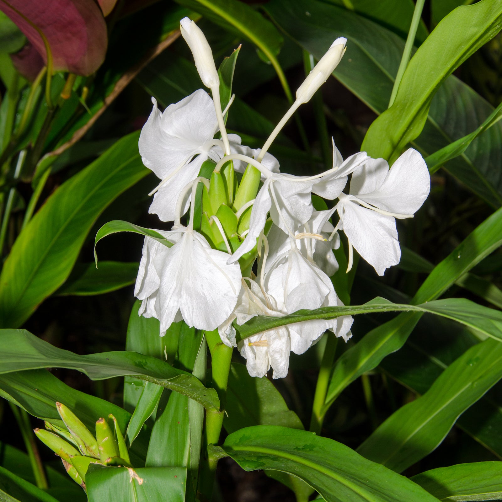 Hedychium coronarium, the white garland-lily or white ginger lily, is a perennial flowering plant in the ginger family Zingiberaceae, native to the forest understorey of Asia. Mostly grown for their extremely fragrant flowers.