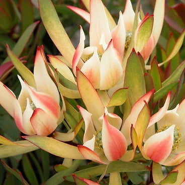 A vigorous upright plant producing long stems of mid-size candy red bracts from Autumn into Winter. Bract colour then changes in late Winter to red and cream. Adaptible to a wide range of soil types that are well drained. For best colour plant in an open sunny situation. Pick stems for floral use as a form of pruning. Plants respond to being well pruned in late Spring - this will enhance flower production the following year. Reasonably frost tolerant once established. Avoid fertilisers. Very useful cutflower, excellent garden plant when in full colour during Autumn to Winter. H 2m x W 1m.