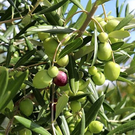 Attractive fast-growing, large upright tree that can be maintained at 4m x 3m by pruning. Clusters of white fluffy flowers in Spring followed by fruit in Autumn. Olives grow in most soils providing plenty of moisture during growing season and drainage.