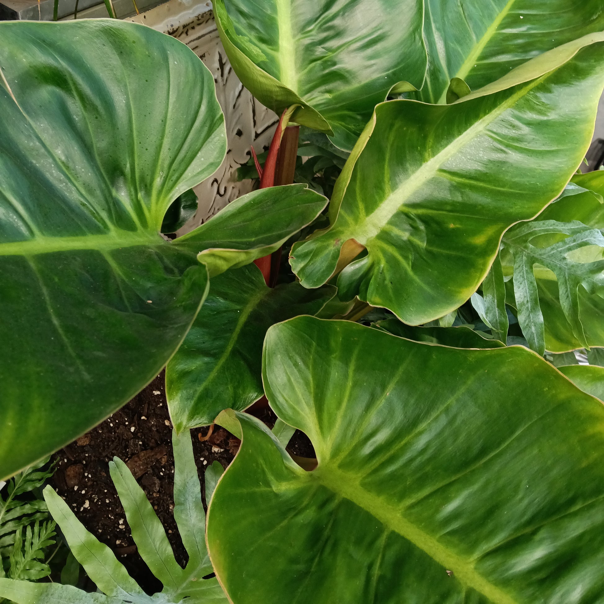 Philodendron giganteum is a robust, popular tropical vining plant with glossy, heart-shaped leaves. It is fast-growing, easy to care for, and can provide oxygen and a pleasant aesthetic to your home. Grow it in indirect sunlight for lush green foliage.