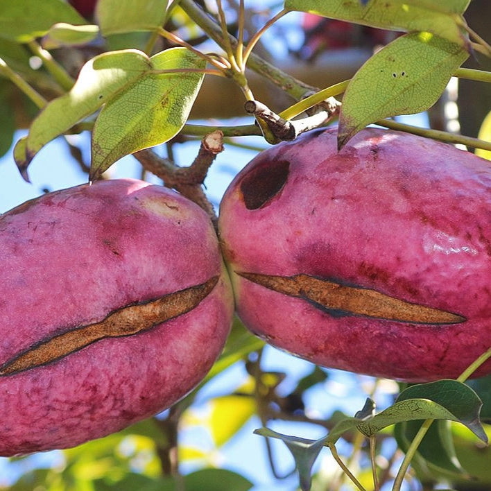 The species is dioecious (individual flowers are either male or female, but only one sex is to be found on any one plant so both male and female plants must be grown if seed is required). and is pollinated by Insects, hand. The plant is not self-fertile. The fruits areΒ ovoid purplish to 5cm in length.