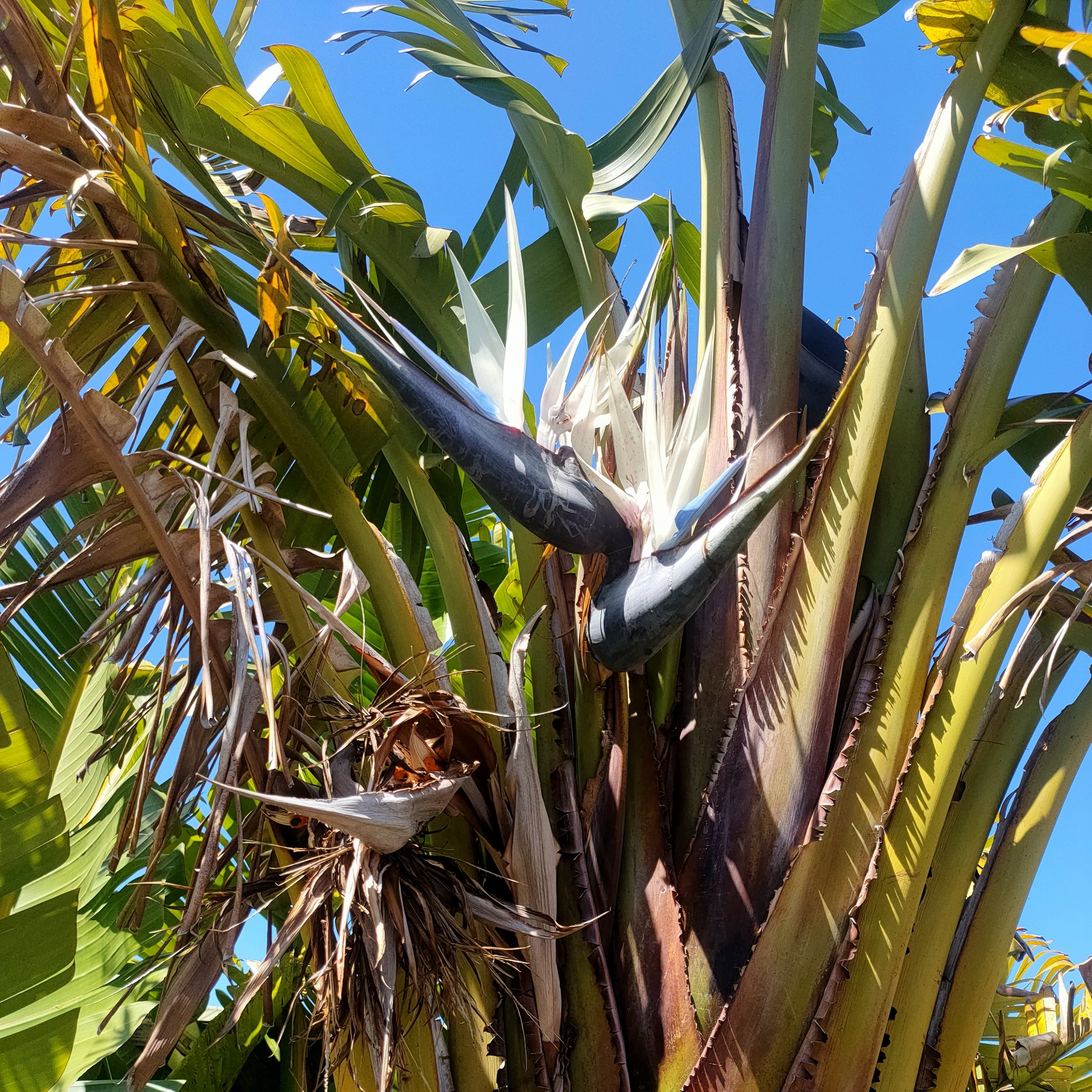 Strelitzia nicolai, commonly known as the wild banana or giant white bird of paradise, is a species of banana-like plants native to South Africa with erect woody stems reaching a height of 7β8m, and the clumps formed can spread as far as 3.5 m wide.