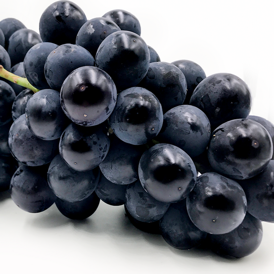 'Kyoho' grapes (Giant Mountain Grape) are a fox grape (Concord-like) cross popular in East Asia. The fruits are blackish-purple, or almost black, with large seeds and juicy flesh with high sugar content and mild acidity.